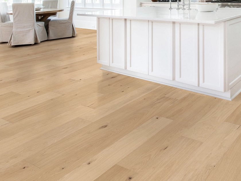 Shaw Hardwood Utmost Eternal features 7.5 inch wide engineered white oak planks designed for lasting durability and timeless style. These wirebrushed floors offer a sophisticated matte finish and micro-bevel edges that complement any modern interior. The sturdy construction provides a reliable flooring solution that handles the demands of daily life with ease.